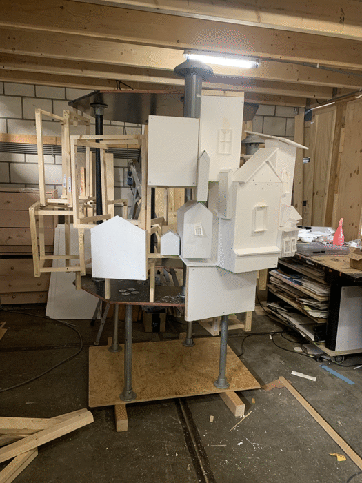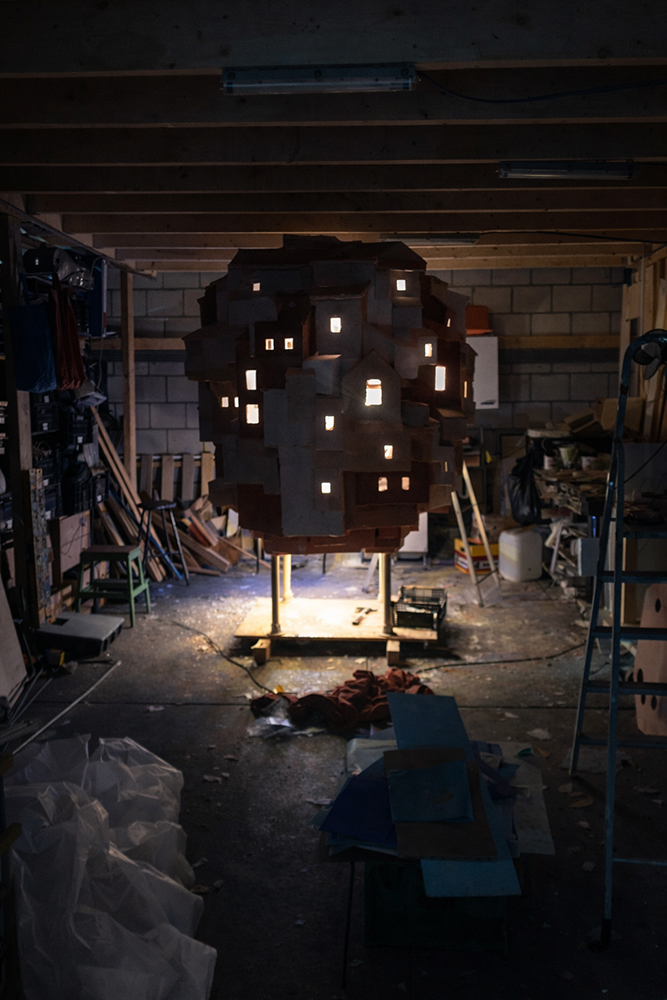Will you put on a very long snorkel at the dining table, will Vlaardingen become a floating island or will you tie the city behind a rocket and move to the moon? Behind the windows of the city on legs you will find a number of scenes that were devised in a ‘Kite Education’ workshop.