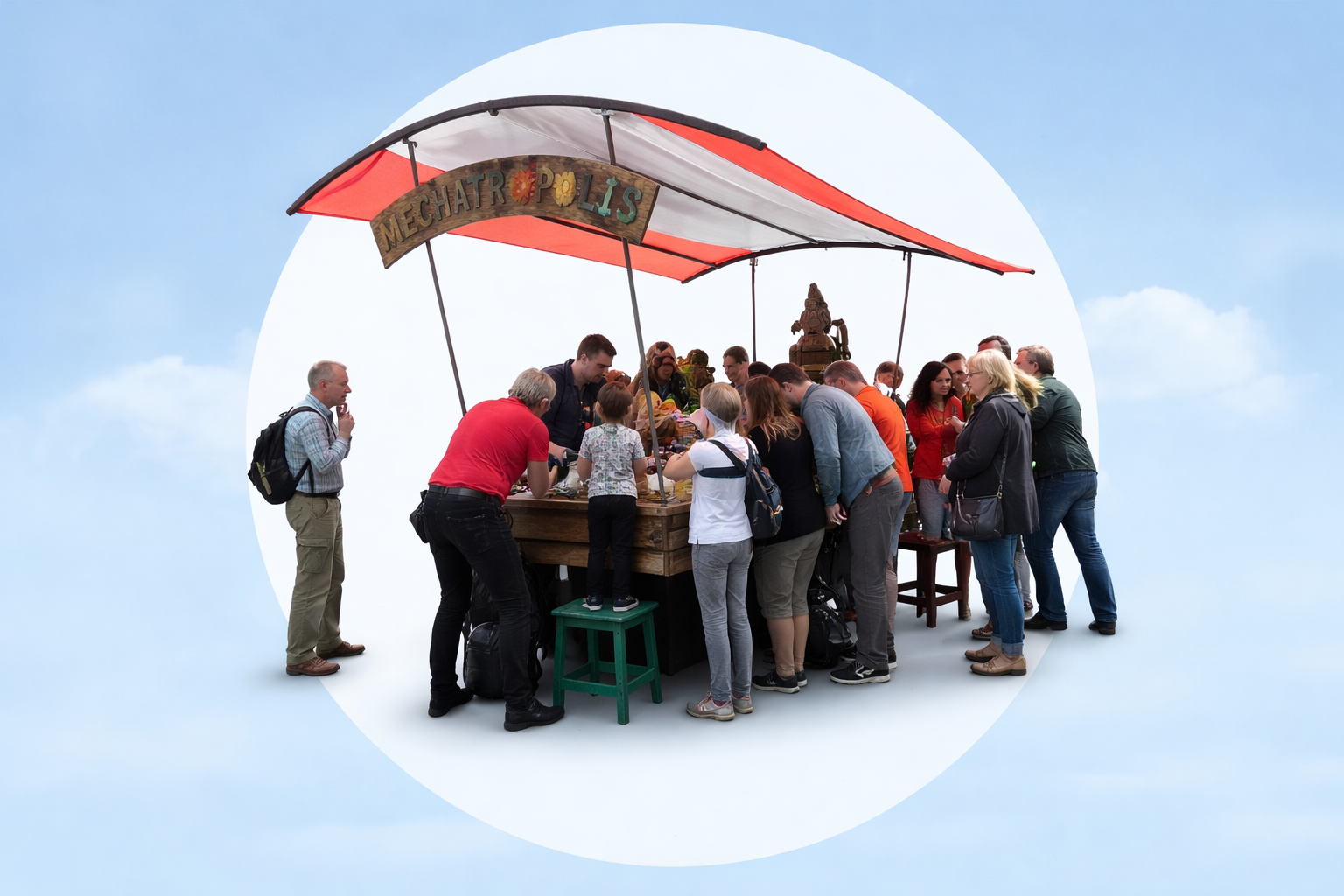 Mechatropolis is an interactive low-tec installation in which you let metal balls roll, spin, twist and jump through a large wooden marble track full of mechanics. All parts, including a maze, a magnetic lift, a puzzle with gears and a track with musical instruments are linked to each other, so you will complete the entire track. Playing, visually discovering and practical puzzling are key.