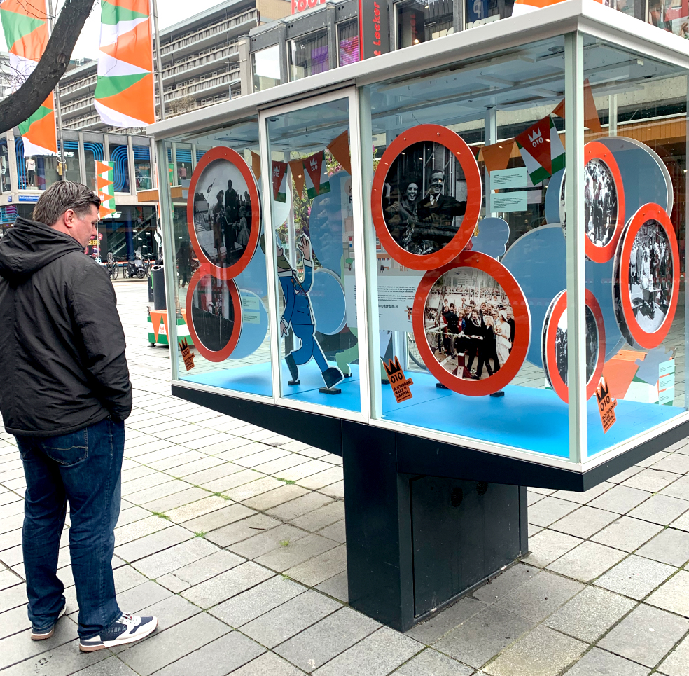 For the ‘Lijnbaan’ (a big shopping street in Rotterdam), I developed various installations for a couple of large, freestanding glass vitrines located in the middle of the street. Over time, the vitrines were repeatedly transformed with new concepts and narratives.