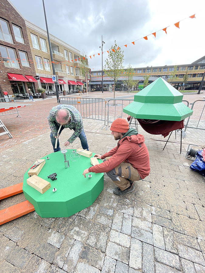 The landmark acted as a living countdown, part poster column, part storytelling object, making the building process visible, tangible, and shared with the neighbourhood.