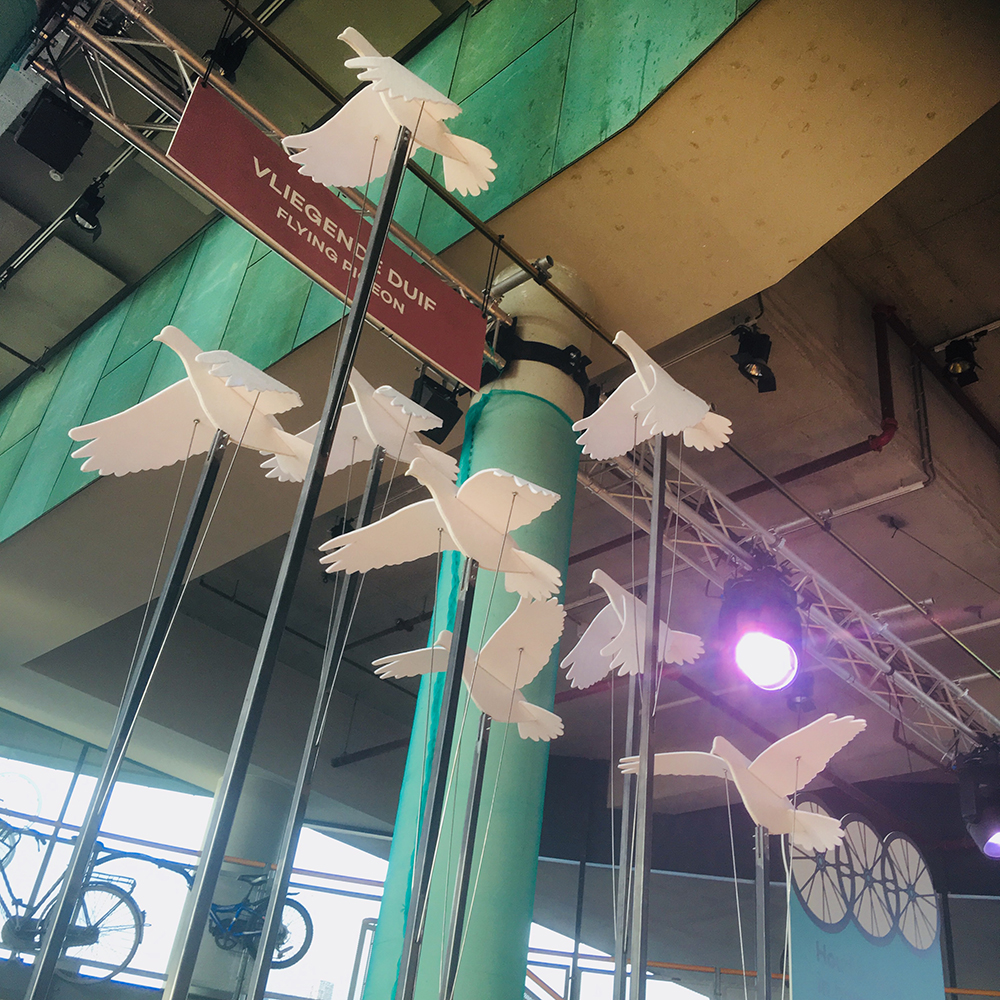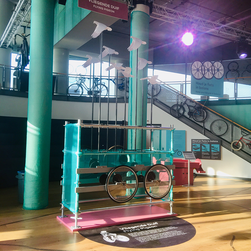 For the summer exhibition Fantastische Fietsen at NEMO, I had the opportunity to create three kinetic installations. Drawing inspiration from bicycle nicknames, the “Boneshaker,” the “Flying Pigeon,” and the “Dandy Horse”, I designed installations crafted from old bicycle parts, with a focus on the transfer of motion. The exhibition later traveled to Continium in Kerkrade.